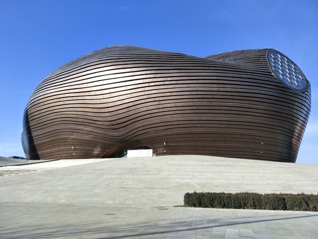 这里选择的对比样张来自于西安美术馆建筑物,由于噪点的出现与感光元件本身的素质、尺寸以及拍摄时所采用的ISO有关,前两者无法量化比较,而且通常来说噪点的出现与拍摄照片时采取的ISO感光度值关系较大,因此对比部分我们特别标注了该样片的ISO。