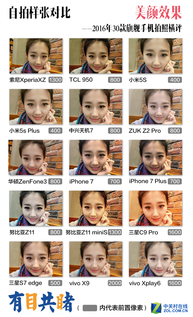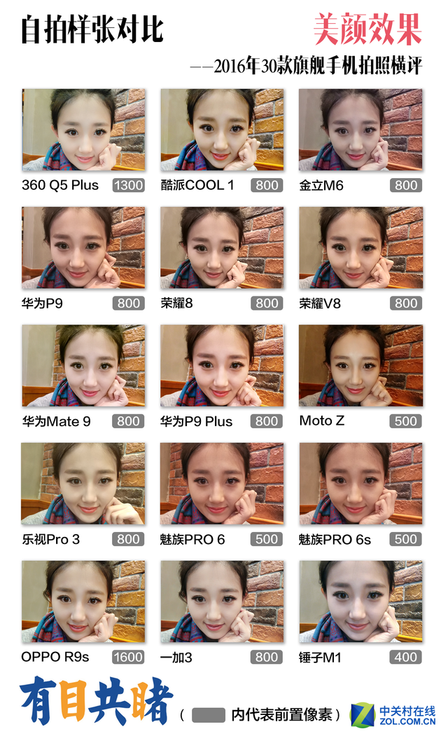 2016年30款旗舰手机拍照横评 自拍样张对比 美颜效果