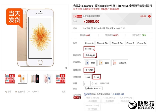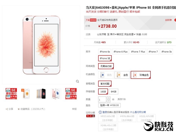 目前在天猫上,国行16GB版iPhone SE已经降价到2738元,而64GB版则是3098元,相比原价来说降幅最高达到了700元。