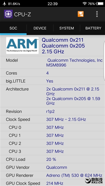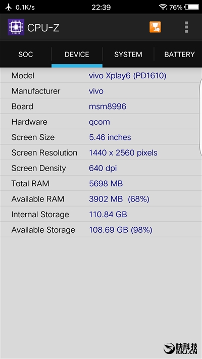 Xplay6这次在核心参数上,跟Xplay5旗舰版相差不大,或者说基本延续了后者的配置,搭载的是依然是骁龙820处理器,相信这颗CPU不少用户都已经很熟悉,毕竟这是目前旗舰机最主要的选择,基于14nm工艺打造,内置四个核心分别是2×Kyro 2.15GHz+2×Kyro 1.59GHz,图形处理器是Adreno 530。