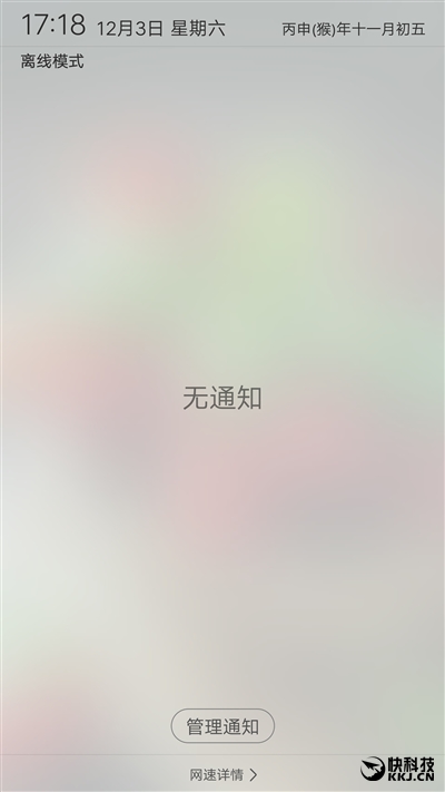 依然支持锁屏画报,每次开机都会显示不一样精美图片,下拉通知栏加入了毛玻璃效果。
