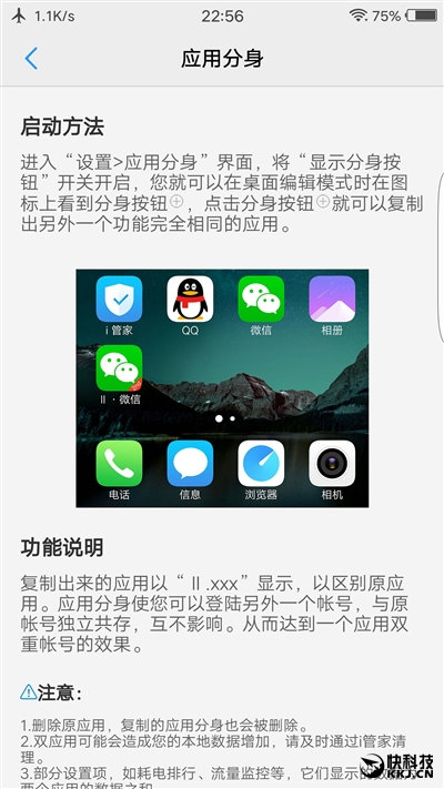 此外,Xplay6还内置了儿童模式、短信智能识别、全局护眼、更简单的程序双开功能,以及新的分屏多任务,应用扩大到QQ微信之外,诸如今日头条、WPS、QQ邮箱、有道云笔记、印象笔记等应用都支持分配,这就大大增加使用场景。