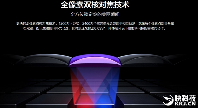 不得不说,这颗索尼IMX362内涵相当彪悍,其支持全像素双核对焦技术,这个对焦技术相当先进,佳能5D Mark IV就采用了同类型的对焦方式,这个对焦简单来说就是,传感器的所有像素点一分为二,而分开后的2个像素点是可以独立成像的,然后相机系统通过对比两个独立成像之间的差别,计算出被摄对象与我们的实际距离,从而实现快速对焦和跟踪对焦。