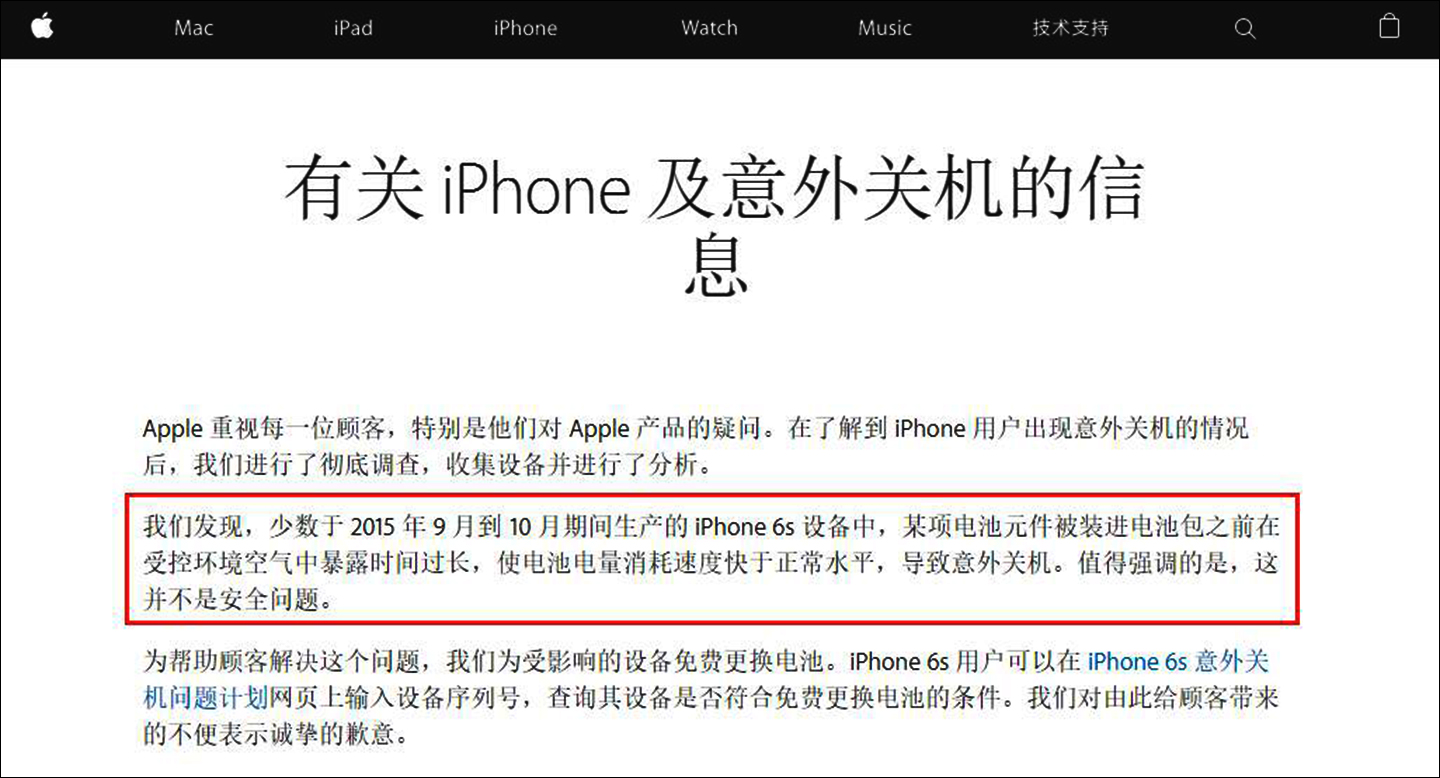 若你恰好是苹果iPhone 6s用户,也正好出现了手机意外关机的问题,则可以登陆苹果官网查询自己的手机是否可以免费更换电池。