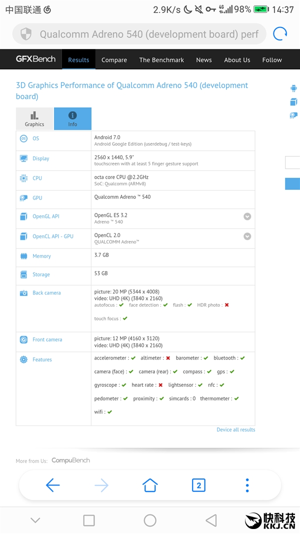 目前GFXBench数据库中已经出现了骁龙835开发机的跑分成绩,虽然不代表最终的成绩,但已经颇具参考价值了。