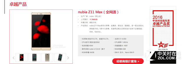 其中努比亚Z11 Max荣膺续航年度卓越奖,产品方面努比亚Z11 Max具有大屏幕、金属身、新玩法、超续航,是一款出色的大屏智能手机。6英寸大屏幕,在超窄边框以及简洁设计加持下足够轻盈;同时,NeoVision 5.9为努比亚Z11 Max带来录像实时特效,率先开放实时视频滤镜、全局美颜,给直播达人、摄影爱好者带来全新技能;最值得一提的是努比亚Z11 Max在NeoPower2.0续航技术准则下,有效解决大屏手机续航短板问题。