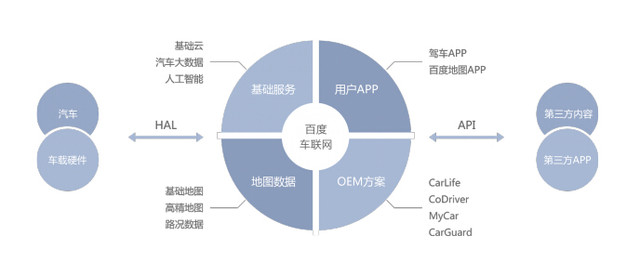 2015年9月在百度世界大会上,百度向外界披露了其在车联网方面的战略布局。据百度地图事业部副总经理顾维灏在会上的介绍,百度车联网生态包括CarLife、MyCar车辆私有云、CoDriver智能语音副驾驶和CarGuard汽车卫士四大OEM解决方案。