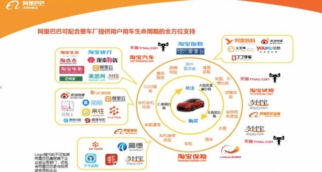 阿里汽车事业部成立“YunOS 事业群”正是为配合上汽集团联合造车,淘宝汽车和天猫汽车以及汽配 O2O 部门合并,服务车主车生活闭环(选车、买车、用车、养车、置换车);高德从图商转型专注做“出行”。