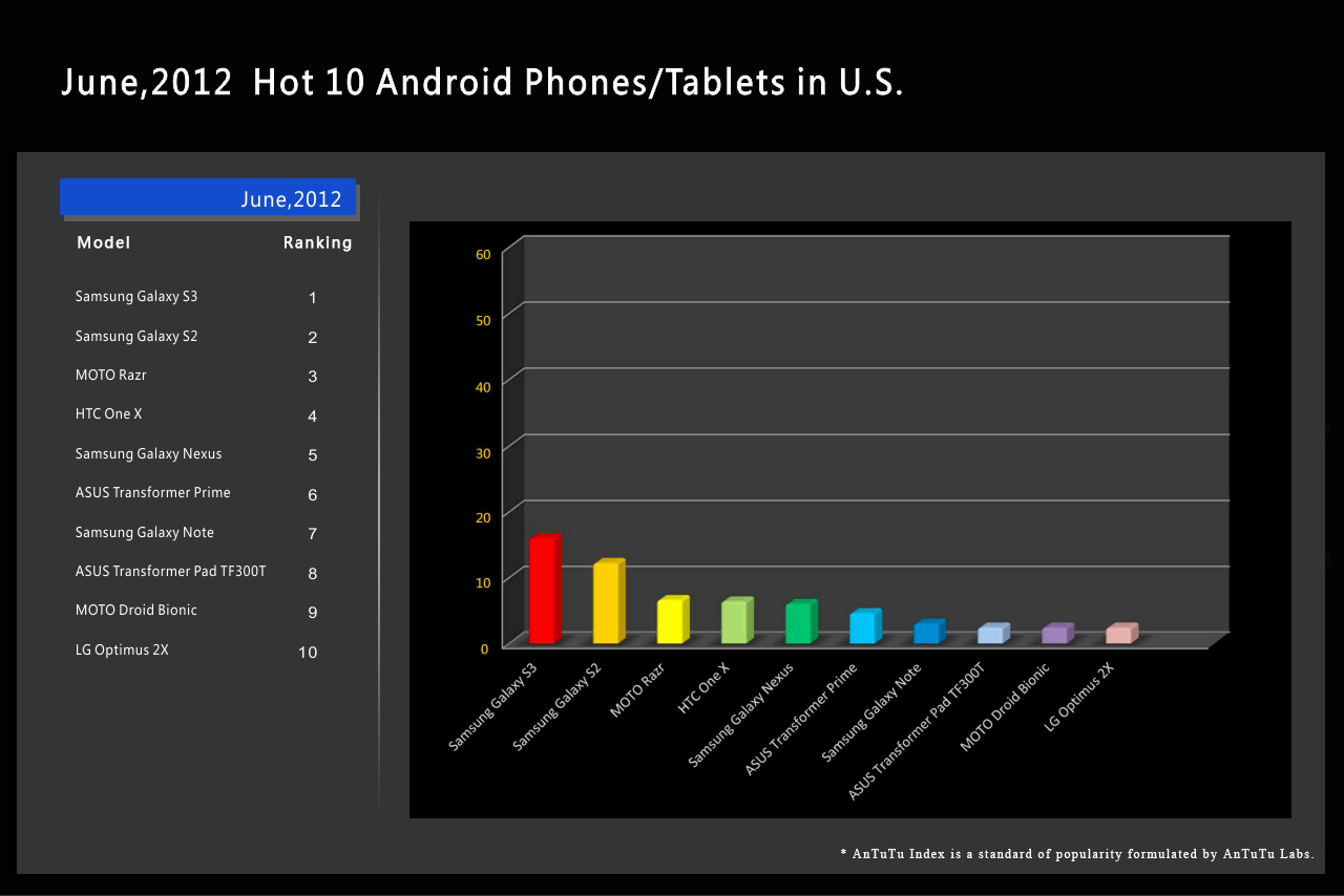 June,2012 Hot 10 Android Phones/Tablets in U.S.