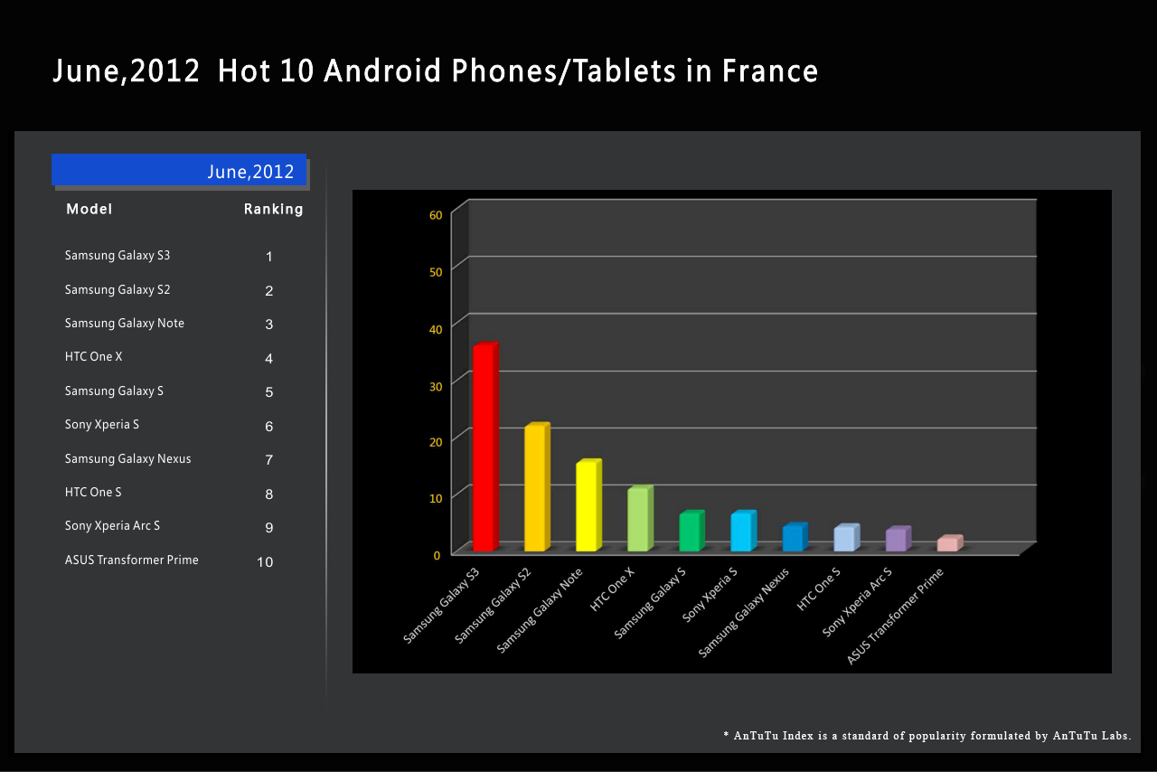 AnTuTu got the statistic data from January to June 2012. Here are the hottest Android phones/tablets