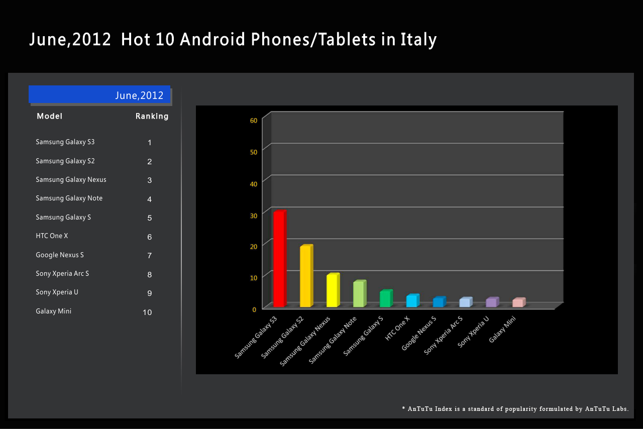 June,2012 Hot 10 Android Phones/Tablets in Italy