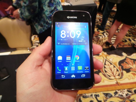 Then we also have another handset shown off and announced today, the Kyocera Hydro EDGE. This phone is nearly identical to the device above in terms of hardware and software, but has a different look and feel. The processor and battery drop down a bit, as does the build quality, but it will be another quality option for the regional carrier Boost Mobile. Just like the phone above the specs are mediocre at best, but will come at a price anyone should be able to handle.