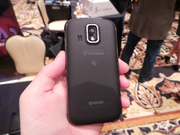 First off we’ll start with the Kyocera Hyrdo XTRM, as it will be arriving on US Cellular and has a more modern looking design. Offered with a nice brushed aluminum front bezel it’s easier on the eyes too. The entire design is more traditional than most ruggedized smartphones, and thanks to a special coating it doesn’t need rubber flaps over the micro-USB and headphone jack. It’s all out and in the open, yet we dropped it in water without issue too.