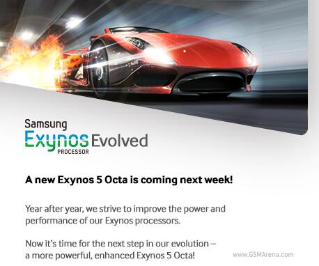 The second generation Exynos 5 Octa might be called Exynos Evolved and will be officially presented next week. So far the teaser just says it’s "a more powerful, enhanced Exynos 5 Octa".