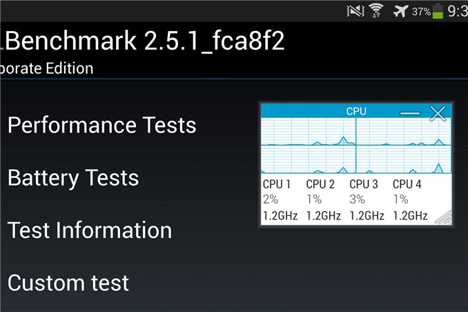 Interestingly enough, the same behavior (on the CPU side) can be found on Qualcomm versions of the Galaxy S 4 as well. In these select benchmarks, the CPU is set to the maximum CPU frequency available at app launch and stays there for the duration, all cores are plugged in as well, regardless of load, as soon as the application starts.