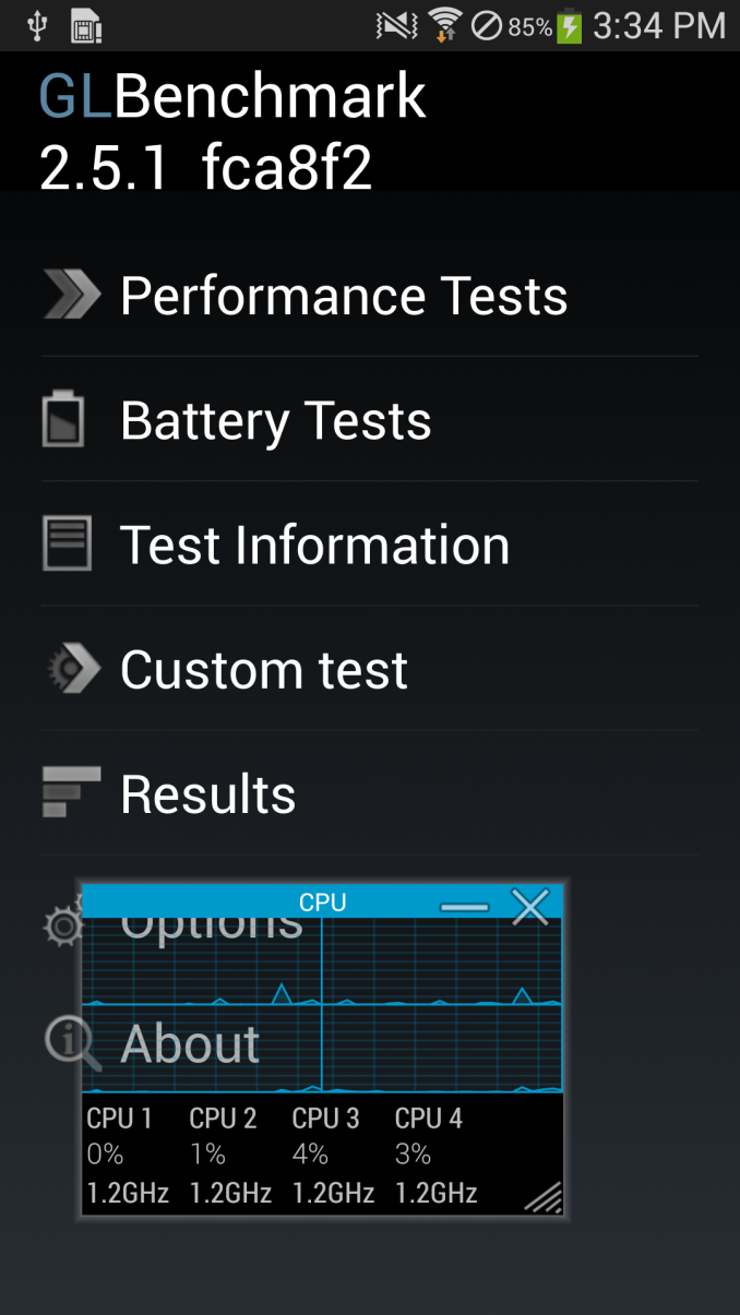 Using System Monitor I kept an eye on CPU frequency while running the same tests. Firing up GLBenchmark 2.5.1 causes a switch to the ARM Cortex A15 cluster, with a default frequency of 1.2GHz. The CPU clocks never drop below that, even when just sitting idle at the menu screen of the benchmark.