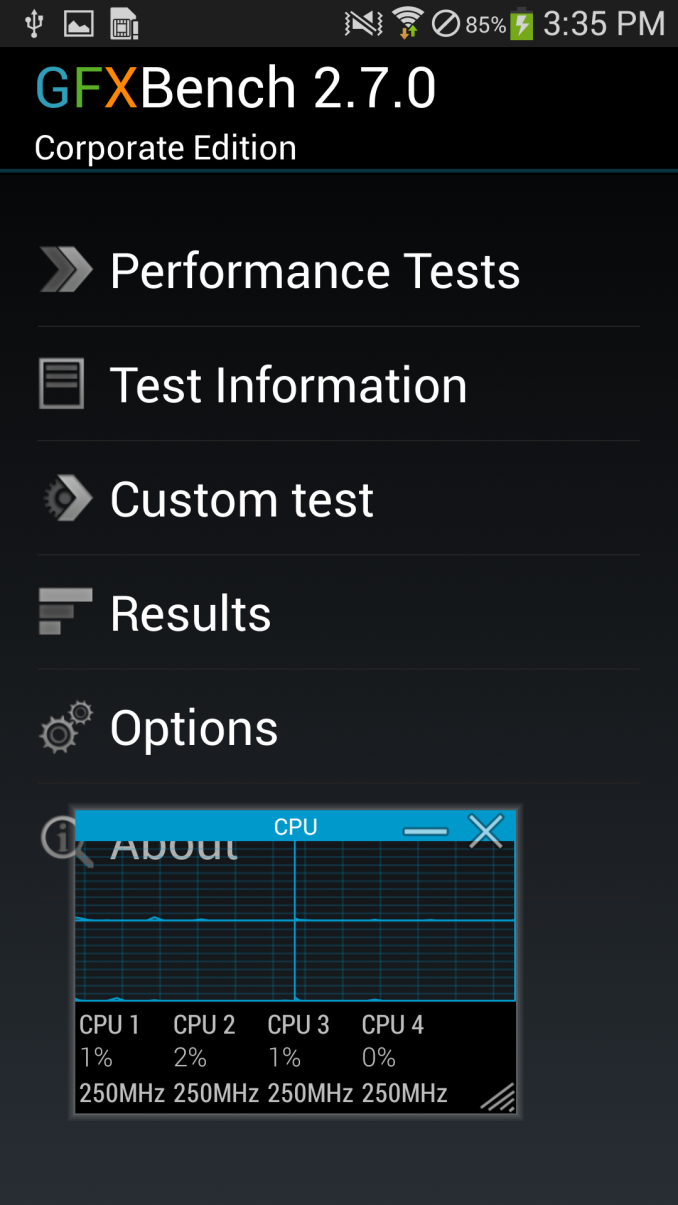 Run GFXBench 2.7 however and the SoC switches over to the Cortex A7s running at 500MHz (250MHz virtual frequency). It would appear that only GLB2.5.1 is allowed to run in this higher performance mode.
