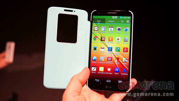LG will be also offering the cool QuickWindow flip covers, but unlike the Galaxy S4 S Cover, those will be wrapping around the back instead of replacing it. This is because the LG G2 uses unibody construction and you can't really remove the back cover.
