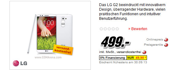 The LG G2 is available in a few other stores in Germany at the original price of €600, but they'll probably drop it soon. We also tried MediaMarkt stores in other countries, but the G2 isn't available in any of them. Note that the G2 is also on pre-order in the UK for £468 (€550).