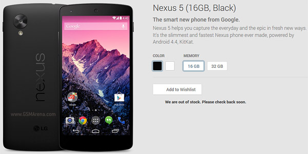 The Google Play Store was out of Nexus 5 16GB stock a couple of hours after the device was officially announced. The 16GB units are still out of stock in the US Play Store.