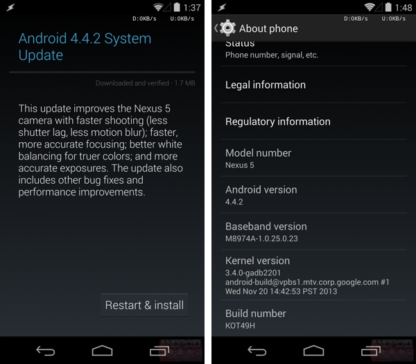 Shortly after the 4.4.1 update, Google has now started rolling out the 4.4.2 update for the Nexus devices. Whereas the previous update focused on improving the camera performance on the Nexus 5, the latest one merely includes bug fixes.