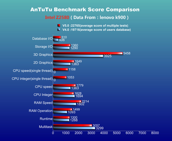 In Antutu V5.0, PowerVR SGX 544 MP2 @ 533 MHz 3D in the Z2580 solution, gets a raised score, which contributes 10% increased of total score.