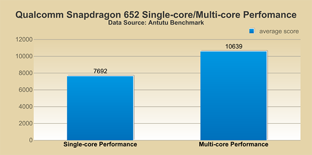 In terms of Antutu score, the octa-core processor Qualcomm Snapdragon 652 has an advantage in CPU single-core performance and CPU multi-core performance compared with Snapdragon 625 due to the four powerful ARM Cortex-A72 cores. The typical Qualcomm Snapdragon 652-powered smartphones are Samsung Galaxy A9 and Xiaomi Max high-end version.